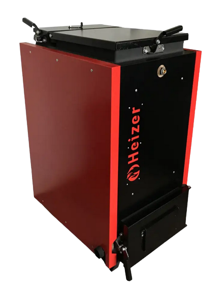 Це котли верхнього завантаження нижнього горіння. Конструкція шахти котла Heizer дає можливість попередньо підсушити паливо для ефективнішого спалювання в топці. Через вертикальну шахту паливо потрапляє на чавунні колосники, де й відбувається процес згоряння й тління завантажувального палива. Під колосниками розміщений відсік попільника, у якому накопичується зола. Очищення зольної скриньки відбувається раз на 2-3 дні. На дверцятах зольника розташовується механічний пристрій, що регулює подавання первинного повітря в зону горіння палива.